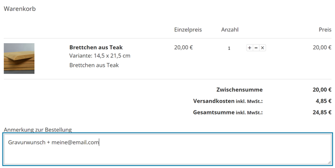 Gravurwunsch + [deine E-Mail-Adresse]